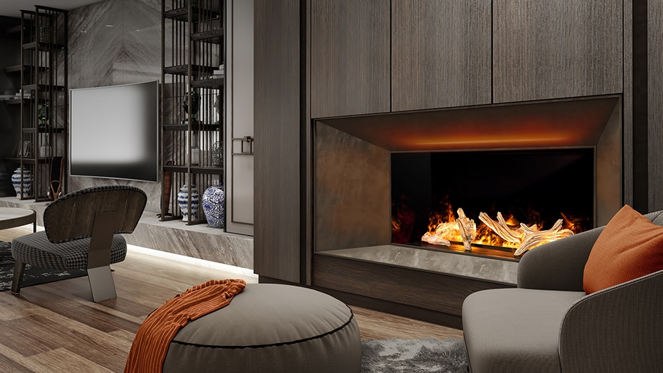 Water vapor fireplaces can be installed virtually anywhere and are often used as architectural design features.
