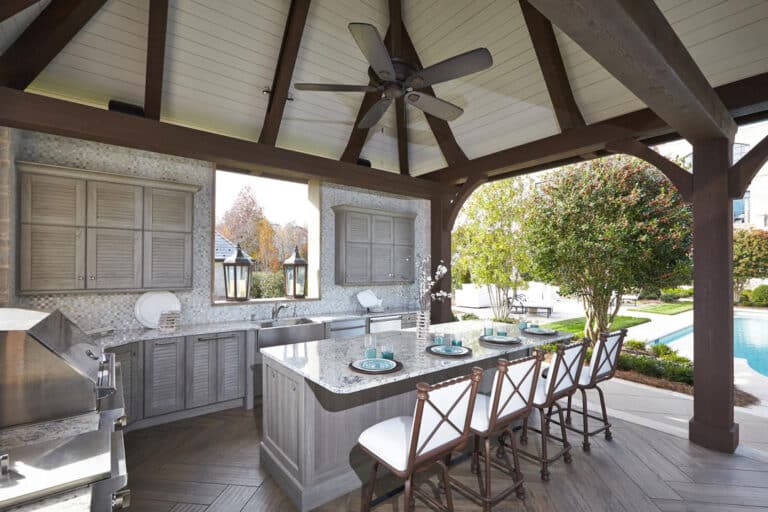 Fireplace and outdoor living designs for Huntersville properties consider how spaces are used throughout the seasons, including: